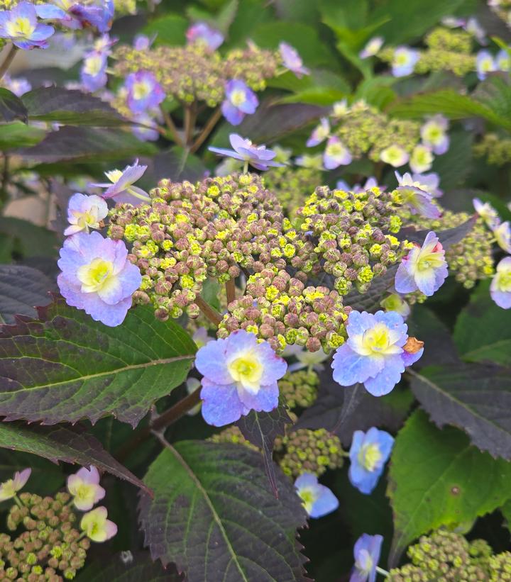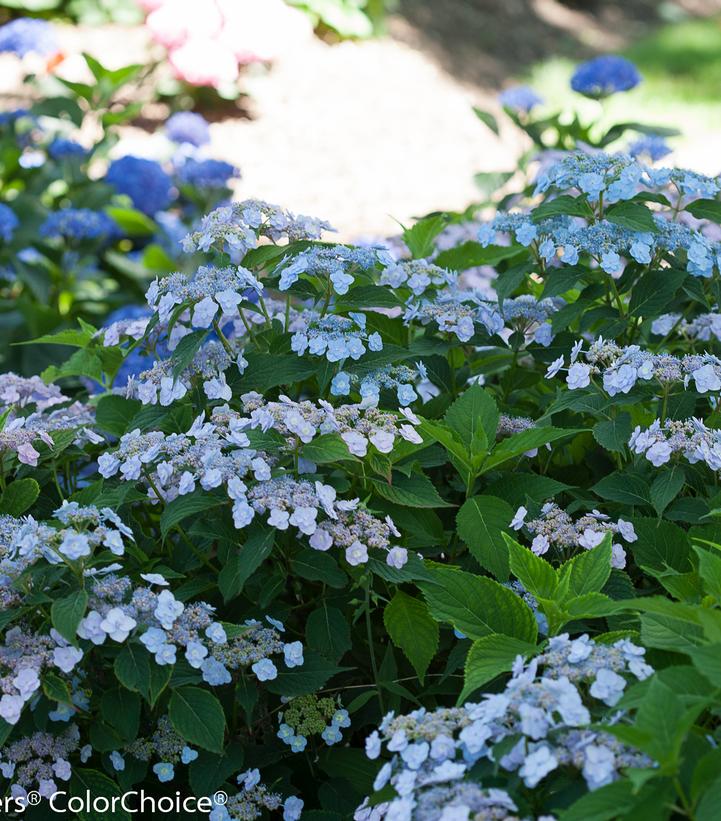 This is a real beauty, with flowers so delicate and refined that it seems strange to call them tough - but they are. Extremely bud-hardy, each year it produces abundant lacecap flowers comprised of doubled sepals. It is a rebloomer. While this plant leans to blue, the flower color may range from blue to pink to white depending on the acidity of the soil, all soft, delicate shades perfect for refined gardens. The flowers age to an attractive pink, and tip down in a distinctive arching fashion. This selection will thrive in half to full day sun and will grab your attention whether planted alone or in groups.